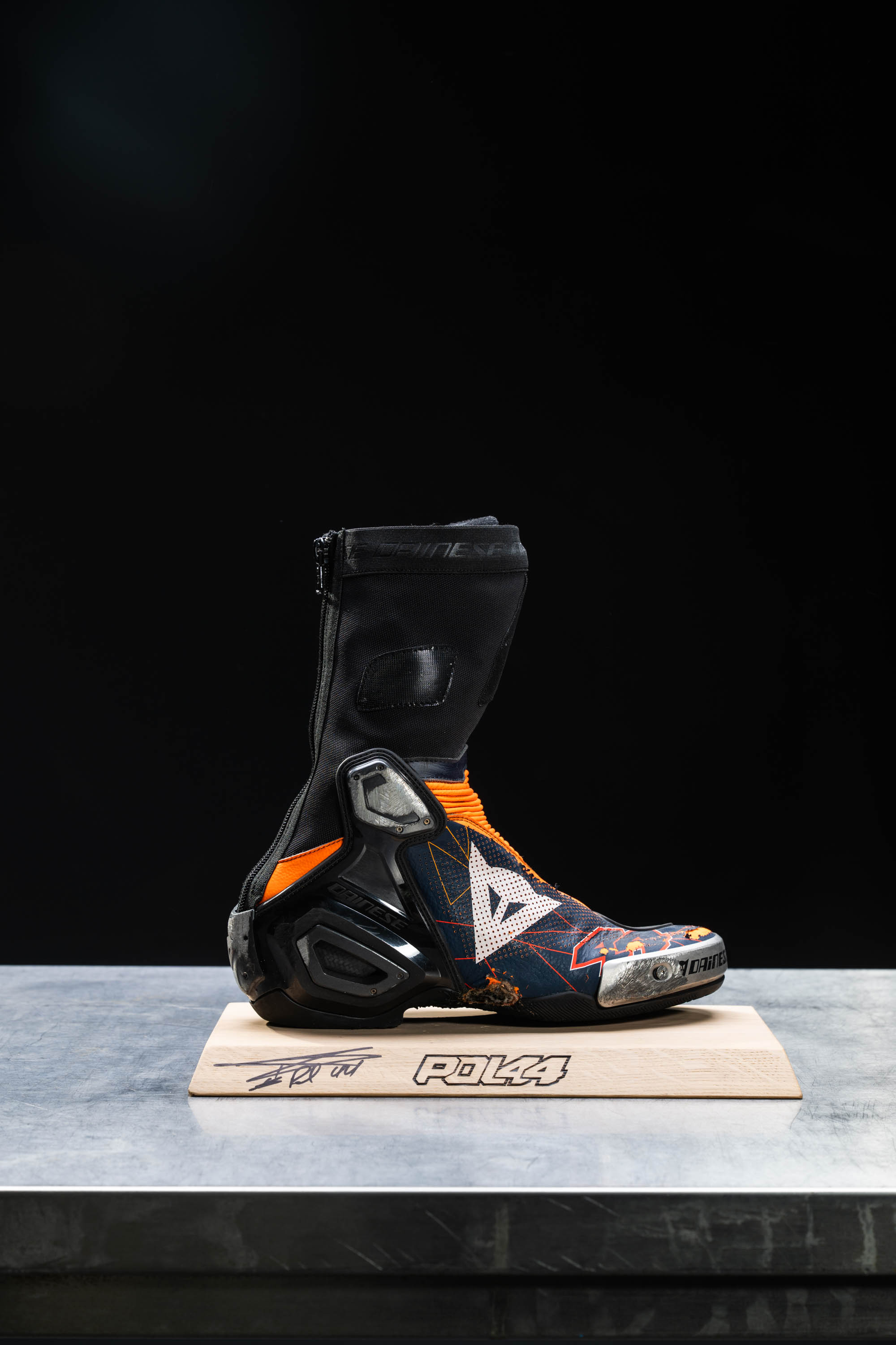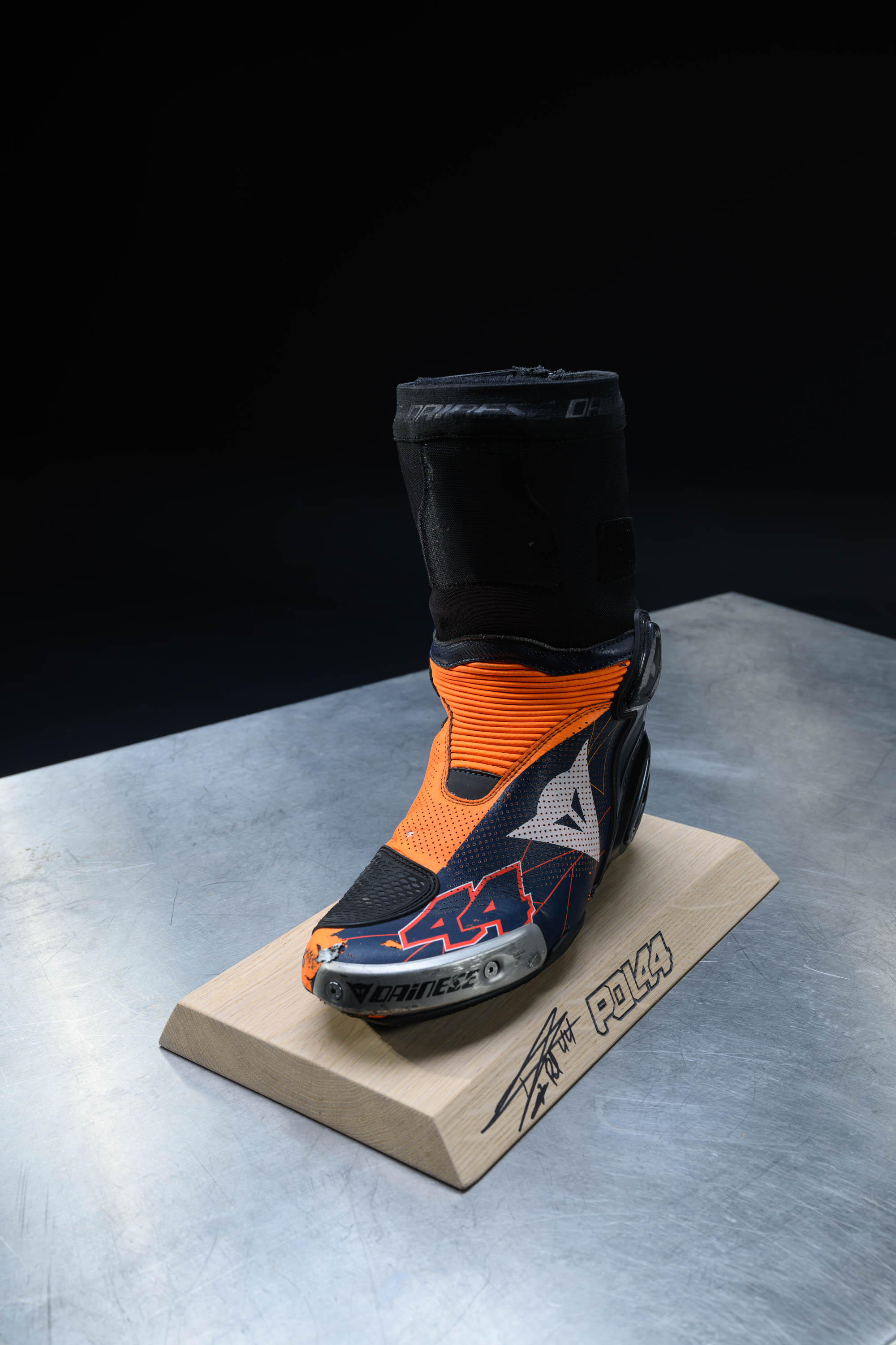 Pol Espargaro : Boot (right) on Signed wooden plith